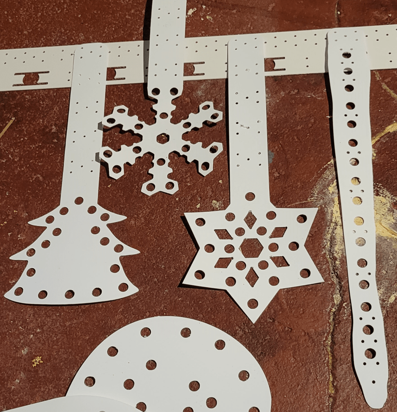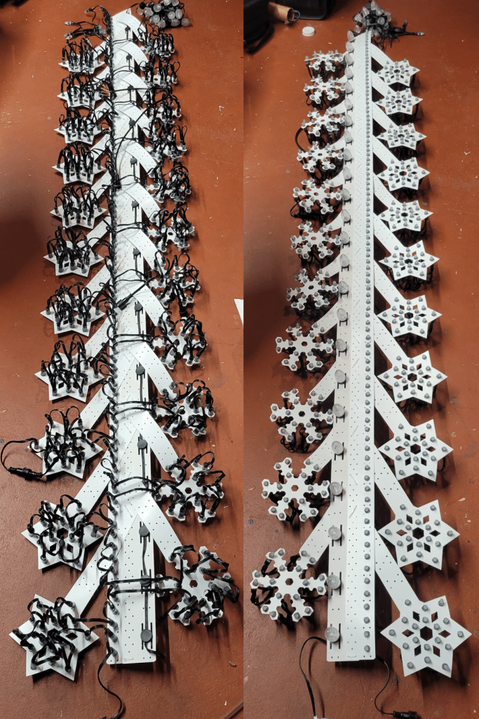 PixelTrim comes with a variety of motifs for winter/Christmas; I chose the two snowflakes. PixelTrim comes in white or black; I chose white. PixelTrim comes with holes for C9 Brilliant Bulbs or 12mm nodes; I chose both (and I reserve the right to zip tie a strip down the middle, too!).